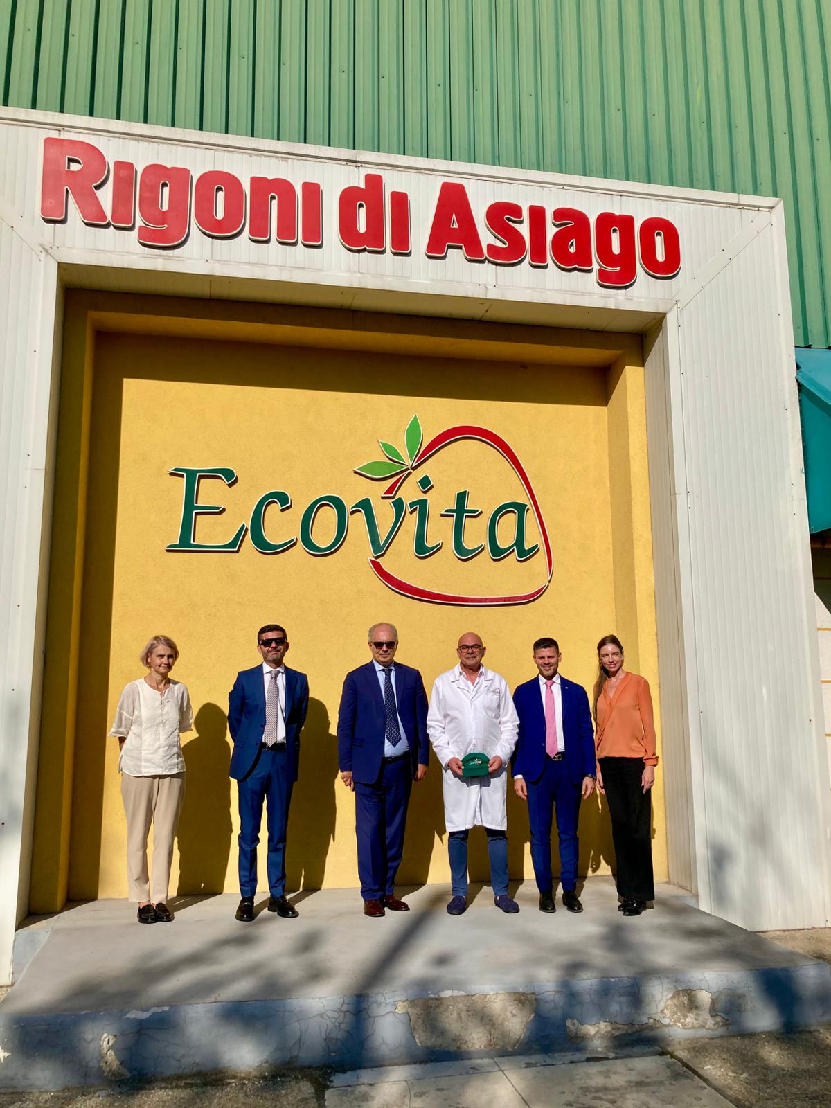 Мисията приключи с обиколка на компанията ЕКОВИТА, част от известната група „Ригони ди Азиаго”, специализирана в първичната преработка на биологични плодове и последващото производство на биологичния конфитюр „Фиордифрута” – известен продукт, разпространяван на италианския пазар. Посланикът и делегацията бяха посрещнати от генералния директор на Ригони България, Доменико Санкрика, който ги придружи при разглеждането на завода, етапите на производство и мерките, предприемани за гарантиране на постоянно високо качество на продукта на многобройните сортове плодове, отглеждани на място от земеделските стопанства на групата Ригони, съчетавайки автентичността и качеството на българското производство на плодове и зеленчуци с високите производствени стандарти на марката „Произведено в Италия”.