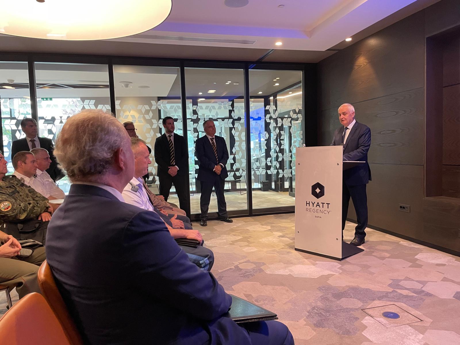 В своето изказване министърът на отбраната Атанас Запрянов благодари на Италия за поемането на ролята на рамкова държава на многонационалната бойна група на НАТО и за отличното сътрудничество в стратегическата област, което скоро ще доведе до подписването на споразумение за засилено сътрудничество в областта на отбраната. Той също така подчерта важността от сближаването на европейските и атлантическите партньори в една международна обстановка, характеризираща се с многобройни кризи.