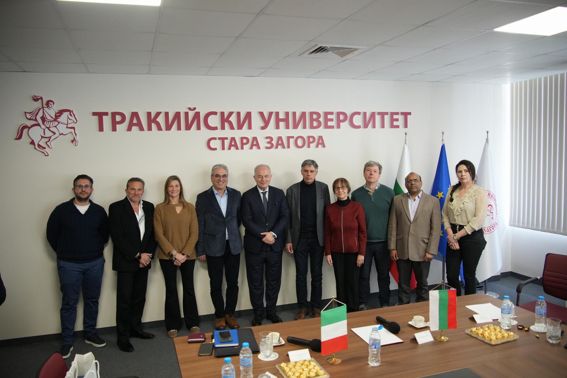 Мисията продължи с посещение в Тракийския университет – важен академичен център с утвърдена традиция в изучаването на аграрни, педагогически, технически, медицински и ветеринарни науки, където посланикът се срещна с ректора, проф. Мирослав Карабалиев. Ректорът представи многобройните международни сътрудничества, стартирани от университета, като подчерта неговия принос към научните изследвания и разработването на иновативни технологии за екологичния преход. Страните отбелязаха лидерската позиция, заета от университета в проекта H2START, насочен към създаването на център за високи постижения в областта на технологиите за използването на водорода като източник на чиста енергия в университетския кампус. Посланикът и ректорът подчертаха важния принос за стартирането на H2START от Политехническия университет в Торино, който се е погрижил за образователните аспекти на проекта, и от Националния изследователски център (CNR), традиционно ангажиран с изследвания в областта на използването на водорода.