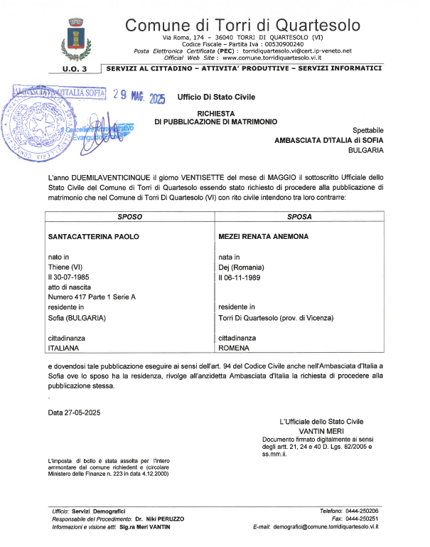 Pubblicazione di matrimonio SANTACATTERINA Paolo