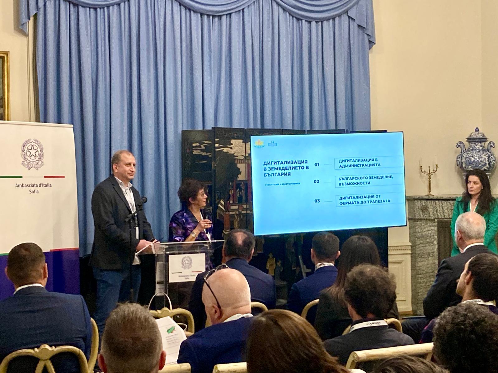 L’evento inaugurale si è aperto con il saluto dell’Ambasciatore Apicella e una presentazione degli esperti del Ministero dell’Agricoltura e dell’Alimentazione bulgaro sullo stato del processo di digitalizzazione del comparto agricolo locale. Il programma è proseguito con la presentazione del Dott. Roberto Mancini, Amministratore Delegato di Diagram S.p.A., realtà agritech italiana partecipata da CDP Equity (Gruppo Cassa Depositi e Prestiti), Trilantic Europe e BF Agricola, consolidatasi come leader nel comparto agritech europeo attraverso l’offerta di servizi nei campi dell’agricoltura di precisione, della sensoristica per l’irrigazione, della mappatura del suolo e della gestione delle risorse a servizio delle pubbliche amministrazioni. Nel corso della presentazione, l’Amministratore di Diagram, Roberto Mancini, si è rivolto a un pubblico di addetti ai lavori provenienti dalla pubblica amministrazione e dalle associazioni rappresentative del comparto agroalimentare, fornendo spunti di riflessione sulle opportunità di modernizzazione del settore agricolo e un più efficiente impiego delle risorse idriche, temi fortemente sentiti in Bulgaria.