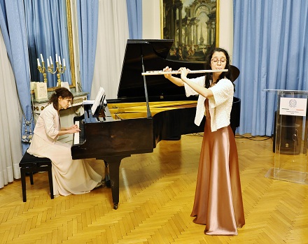 Giovedì, 12 dicembre, l’Ambasciatore d’Italia in Bulgaria Marcello Apicella, in collaborazione con l’Ambasciatrice d’Austria, Andrea Ikić-Bohm, ha ospitato presso la Residenza italiana un concerto della flautista Avigea Delivicheva e della pianista Maria Delivicheva. Il concerto in Residenza rappresenta il tradizionale punto d’arrivo del Concorso Internazionale Flautistico “Moyse”, organizzato dalla Prof.ssa Luisa Sello della Nuova Università Bulgara (“NBU”) con il sostegno dell’Ambasciata d’Italia in Bulgaria, dell’Istituto Italiano di Cultura di Sofia e di Confindustria Bulgaria. Il Concorso si è concluso nel luglio scorso proprio con il successo di Avigea e Maria Delivicheva, vincitrici del premio dedicato alla memoria del celebre flautista svizzero Conrad Klemm.